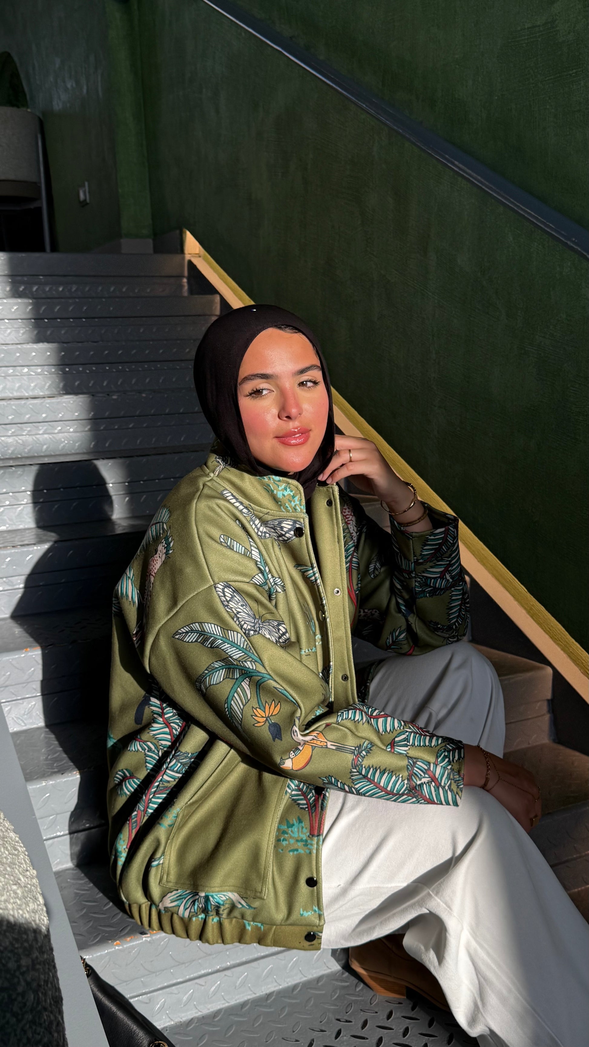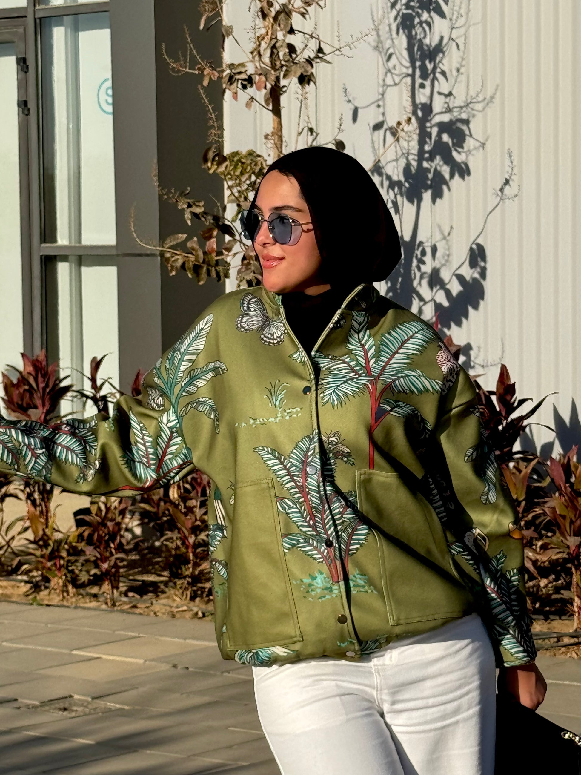 A statement olive jacket with a bold botanical print, designed for effortless style and everyday comfort. Easy to layer, modern in fit, and perfect for elevating any casual look. 🌿